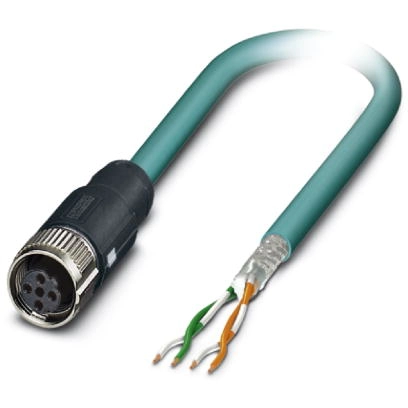 Netzwerkkabel, Ethernet CAT5 (100 MBit/s), 4-polig, geschirmt, freies Leitungsende, auf Buchse gerade M12, Kodierung: D SPEEDCON / IP67, Kabellänge: 2 m.