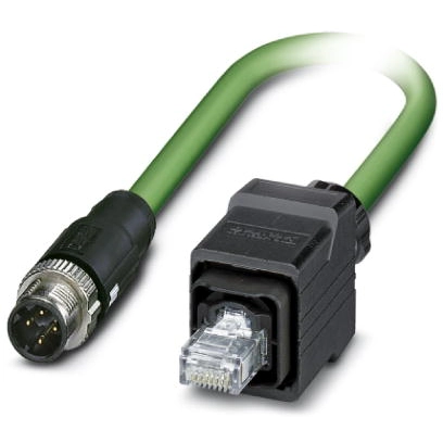 Netzwerkkabel, M12-Stecker, gerade auf RJ45-Stecker, gerade, Cat 5, SF/TQ, PVC, 1 m, grün, 1407520