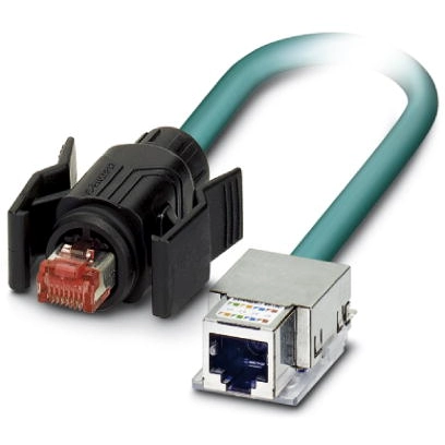 Konfektioniertes Ethernet-Kabel, CAT6, geschirmt, 4-paarig, AWG 26 flexibel (7-drähtig), RAL 5021 (wasserblau), RJ45-Buchsenmodul/IP20 für Freenet-System, 8-polig auf RJ45-Stecker/IP67, schwarz, Line, Länge 5 m.
