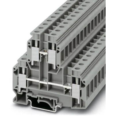 Doppelstöckige Klemmleiste, Nennspannung: 500 V, Nennstrom: 57 A, Anschlusstechnik: Schraubanschluss, 1. und 2. Ebene, Nennquerschnitt: 10 mm², Querschnitt: 0,5 mm² - 16 mm², Bemessungsquerschnitt: 10 mm², Querschnitt: 0,5 mm² - 16 mm², Befestigungsart: NS 35/7,5, NS 35/15, NS 32, Farbe: grau.