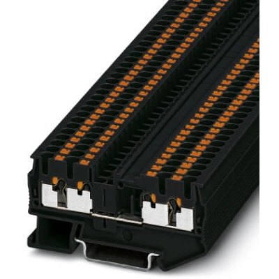Durchgangsreihenklemme, Nennspannung: 800 V, Nennstrom: 24 A, Anschlusstechnik: Push-In-Anschluss, 1 Ebene, Nennquerschnitt: 2,5 mm², Querschnitt: 0,14 mm² - 4 mm², Montageart: NS 35/7,5, NS 35/15, Farbe: schwarz.