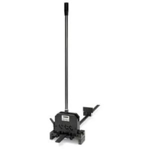 Profilschneider zum Ablängen und Stanzen von Normtragschienen, NS 32 / NS 35/7,5 / NS 35/15 sowie zum Ablängen von NS 15 und Neutralleitersammelschiene NLS‑CU 3/10, zur Aufnahme von 2 Stanzeinsätzen, einfacher Austausch der Stanzeinsätze, mit metrischer Maßschiene, Auslieferzustand ohne Stanzeinsätze.