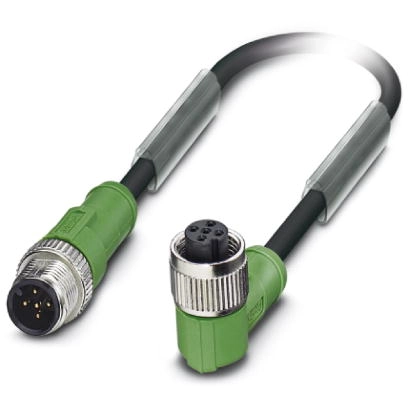 Sensor-Aktor Kabel, M12-Kabelstecker, gerade auf M12-Kabeldose, abgewinkelt, 5-polig, 0.8 m, PUR, schwarz, 4 A, 1069599