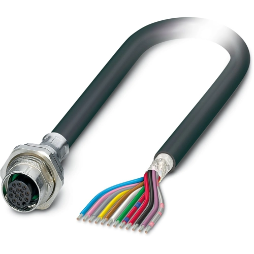 Gerätesteckverbinder Hinterwand, Universal, 12-polig, PVC/PVC, schwarz RAL 9005, geschirmt, Buchse, gerade, M12-SPEEDCON, A-Kodierung, uf freies Leitungsende, Kabelanschluss, Kabellänge: 2 m, 0,14 mm², PVC schwarz .