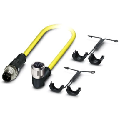 Sensor-/Aktorleitung, 3-polig, PVC, Gelb, Stecker gerade M12 SPEEDCON, Kodierung: A, auf Buchse gewinkelt, M12 SPEEDCON, Kodierung: A, Kabellänge: 1,5 m
