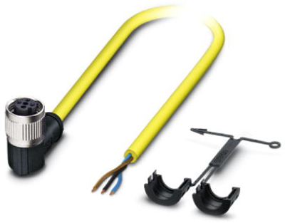 Sensor-/Aktorleitung, 3-polig, PVC, Gelb, freies Leitungsende, auf Buchse gewinkelt, M12 SPEEDCON, Kodierung: A, Kabellänge: 10 m