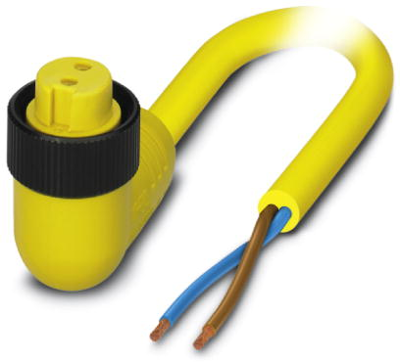 Powerleitung, 2-polig, PVC, Gelb, freies Leitungsende, auf Buchse gewinkelt, 7/8"-16UNF, Kabellänge: 1 m