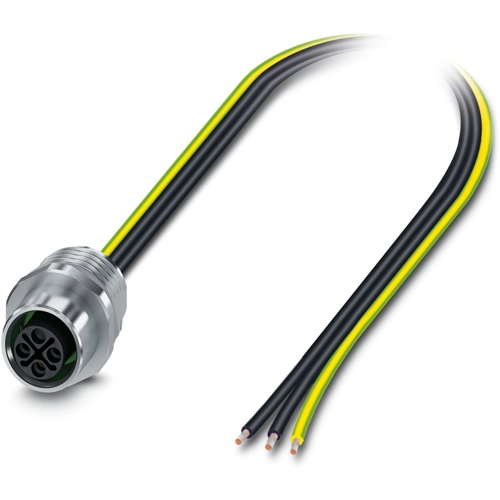 Gerätesteckverbinder Vorderwand, Leistung, 3-polig, Buchse, gerade, M12-Standard, Kodierung: S, auf freies Leitungsende, Vorderwandmontage, M16 x 1.5, Einzellitzen, Kabellänge: 0.5 m, 1.31 mm², UL/cUL Schaltlitze, vergossen,Artikel ist bleifrei nach RoHS II ohne Ausnahme 6c (Pb < 0,1 %).