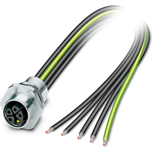 Gerätesteckverbinder Vorderwand, Leistung, 5-polig, Buchse, gerade, M12-Standard, Kodierung: K, auf freies Leitungsende, Vorderwandmontage, M16 x 1.5, Einzellitzen, Kabellänge: 0.2 m, 2.50 mm², PEX -Litze, vergossen,Artikel ist bleifrei nach RoHS II ohne Ausnahme 6c (Pb < 0,1 %).