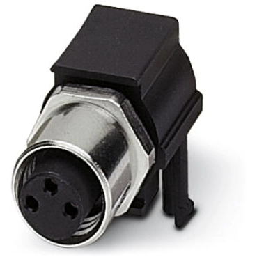 Sensor-/Aktor-Einbausteckverbinder, Buchse, 3-polig, M8, Hinterwand-/Schraubmontage mit M8 Gewinde, verdrehgeschützt, mit gewinkteltem Lötanschluss.