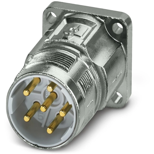 M23, Gerätesteckverbinder Vorderwand, Serie: M23 PRO, gerade, geschirmt: ja, für Standard- und ONECLICK-Schnellverriegelung, Polzahl: 5+PE, Drehsinn: Standard, Kontaktart: Stift, Crimpanschluss, 4x Ø 3.2, Flanschmaß: 26 mm x 26 mm, Kodierung: N, Artikel ist bleifrei nach RoHS II ohne Ausnahme 6c (Pb < 0,1 %).