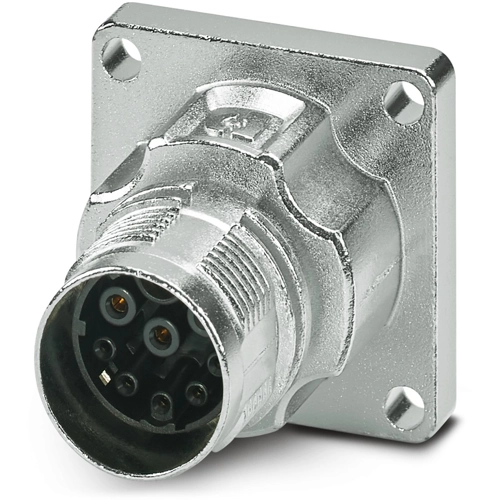 M17, Gerätesteckverbinder Vorderwand, Serie: M17 PRO, gerade, geschirmt: ja, für Standard- und ONECLICK-Schnellverriegelung, Polzahl: 5+3+PE, Drehsinn: Standard, Kontaktart: Buchse, Crimpanschluss, Flanschmaß: 28 mm x 28 mm, Kodierung: N, Artikel ist bleifrei nach RoHS II ohne Ausnahme 6c (Pb < 0,1 %).