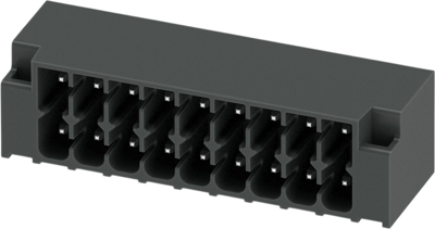 Leiterplatten-Grundleiste, Nennquerschnitt: 1,5 mm², Farbe: schwarz, Nennstrom: 8 A, Bemessungsspannung (III/2): 160 V, Kontaktoberfläche: Sn, Kontaktart: Stift, Anzahl der Reihen: 2, Polzahl: 9, Artikelfamilie: DMC 1,5/..-G1-LR-THR, Rastermaß: 3,5 mm, Montage: THR-Löten / Wellenlöten, Pin-Layout: Lineares Pinning, Pinlänge [P]: 2 mm, Anzahl der Lötpins pro Potenzial: 1, Stecksystem: COMBICON DFMC 1,5, Ausrichtung Steckgesicht: Standard, Verriegelung: Lock-and-Release-Verriegelung, Befestigungsart: Lock + Release, Verpackungsart: verpackt im Karton.