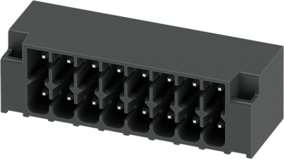 Leiterplatten-Grundleiste, Nennquerschnitt: 1,5 mm², Farbe: schwarz, Nennstrom: 8 A, Bemessungsspannung (III/2): 160 V, Kontaktoberfläche: Sn, Kontaktart: Stift, Anzahl der Reihen: 2, Polzahl: 8, Artikelfamilie: DMC 1,5/..-G1-LR-THR, Rastermaß: 3,5 mm, Montage: THR-Löten / Wellenlöten, Pin-Layout: Lineares Pinning, Pinlänge [P]: 2 mm, Anzahl der Lötpins pro Potenzial: 1, Stecksystem: COMBICON DFMC 1,5, Ausrichtung Steckgesicht: Standard, Verriegelung: Lock-and-Release-Verriegelung, Befestigungsart: Lock + Release, Verpackungsart: verpackt im Karton.