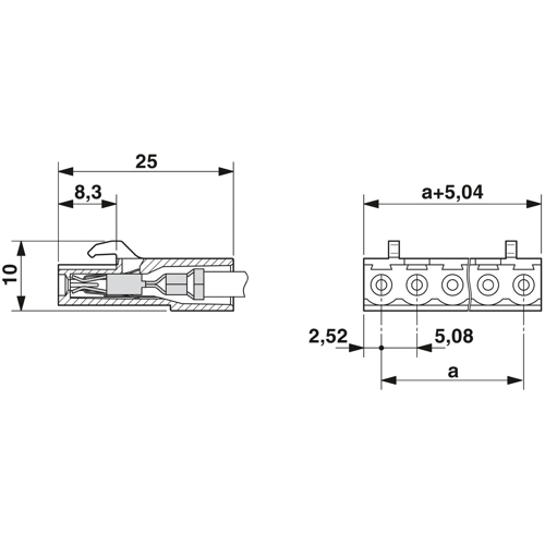 - Rastermaß des Kontaktes : 5.08 mm