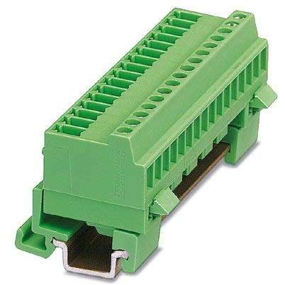 Tragschienenstecker, Nennstrom: 8 A, Bemessungsspannung (III/2): 160 V, Polzahl: 14, Rastermaß: 3,81 mm, Anschlussart: Schraubanschluss mit Zughülse, Farbe: grün, Kontaktoberfläche: Zinn, Montage: Tragschiene