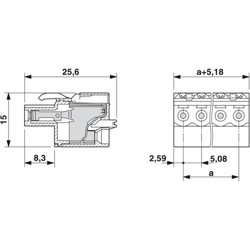 - Winkel Kontakt/Leiteranschluss : 180° (horizontal)