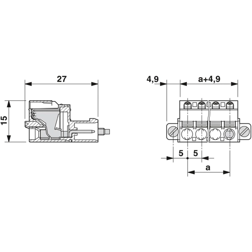 - Winkel Kontakt/Leiteranschluss : 180° (horizontal)