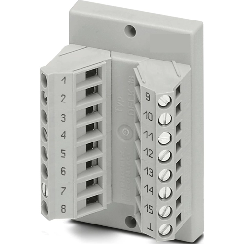 Das VARIOFACE-Durchführungsmodul realisiert eine 1:1-Verbindung zwischen Schraubanschlussklemmen und einer D-Subminiatur-Stiftleiste (Polzahl 15).