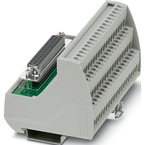 VARIOFACE-Modul mit Schraubanschluss und D-SUB-50-Steckverbinder, zur Montage auf NS-35-Tragschienen.