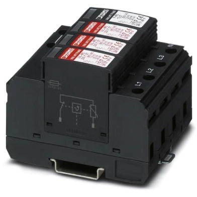 Überspannungsableiter bestehend aus Basiselement und Schutzsteckern, zur Montage auf NS 35/7,5, Ausführung: 230 V AC - IT-System, 3 + 1-Schaltung.