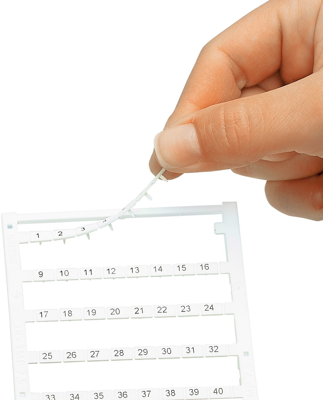 Marker für Klemmen, Matte, weiß, unbeschriftet, beschriftbar mit: BLUEMARK E.CARD, BLUEMARK ID Farbe, BLUEMARK ID, BLUEMARK CLED, PLOTMARK, CMS-P1-PLOTTER, Montageart: verrasten, für Klemmenbreite: 5.2 mm, Anzahl der Einzelschilder: 96, Textfeldhöhe: 3.97 mm, Textfeldbreite: 4.6 mm.