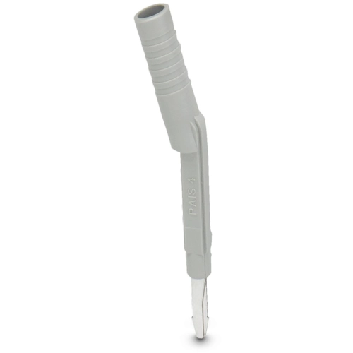 Prüfadapter, In gestecktem Zustand fingersicher gegen unbeabsichtigtes direktes Berühren nach DIN EN 50274, für 4 mm Prüfstecker und Klemmen mit Teilung 5,2 mm, 6,2 mm und 8,2 mm, Polzahl: 1, Farbe: grau.