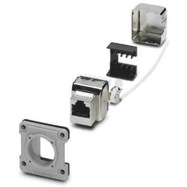 RJ45-Anbaurahmen, IP67, modular (Keystone), für rechteckige Montageausschnitte, mit Dichtung ohne Befestigungsschrauben, mit modularem RJ45-Buchseneinsatz, CAT5e, Buchse auf LSA