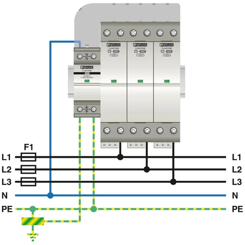 Verdrahtungsbrücke für das Verbinden von drei Blitzstromableitern FLASHTRAB SEC HYBRID mit einer N/PE-Funkenstrecke zu einer 3+1-Schaltung für TN-S-/TT-Systeme. Anschlussraster 17,5 mm, 1-phasig, 8-polig, Querschnitt 35 mm² mit stabilem Kunststoffgehäuse für den notwendigen Berührschutz bei Verwendung als Neutralleiterbrücke.