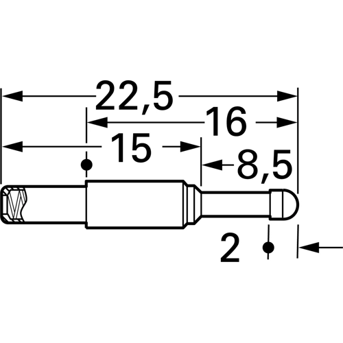 Batterielade- und Schnittstellenkontakt mit Tastkopf, Rundkopf, Ø 2.3 mm, Hub 3.5 mm, RM 4 mm, L 22.5 mm, 5110/O.03-D-1.5N-AU-2.3 M