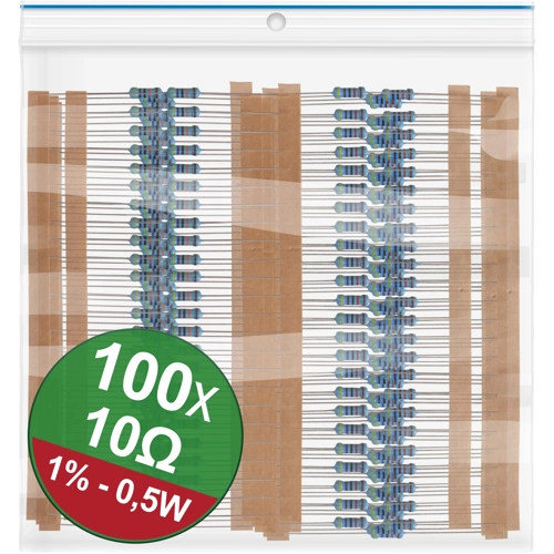 Metall-Schichtwiderstand, 10 Ω, 0.5 W, ±1 %, 22P085, Packung mit 100 Stück