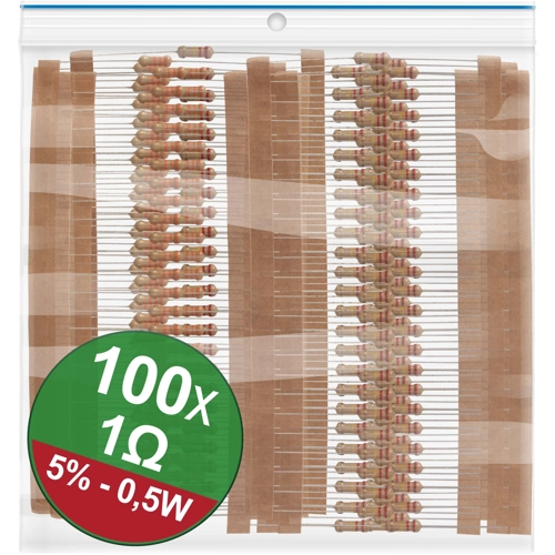 Kohleschicht Widerstand, 1 Ω, 0.5 W, ±5 %, 22P107, Packung mit 100 Stück