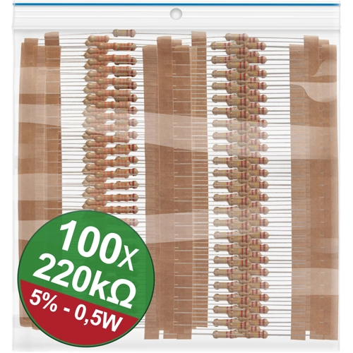 Kohleschicht Widerstand, 220 kΩ, 0.5 W, ±5 %, 22P124, Packung mit 100 Stück