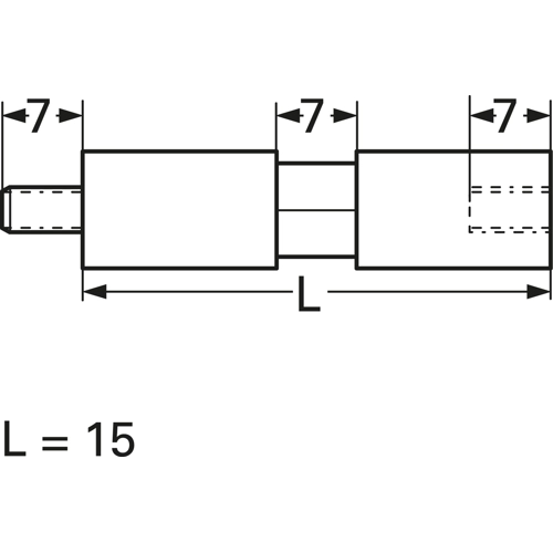 Rund, mit 7,0 mm breitem Sechskant in der Mitte und voneinander isolierten Gewinden, eine Seite Gewindestift, andere Seite Gewindebuchse