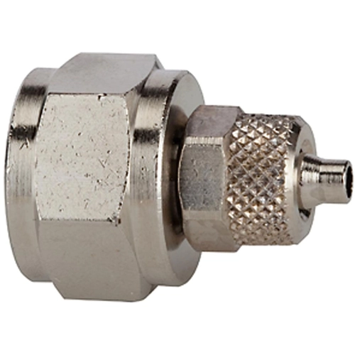 Gerade Aufschraubverschraubung, G 3/8 i., für Schlauch 6/4 mm, AF 20, Arbeitsdruck max. 18 bar, Messing vernickelt.