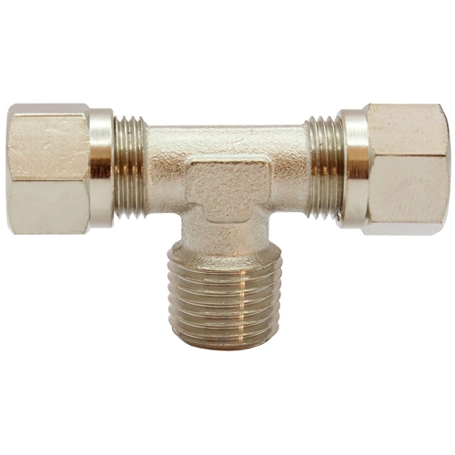 T-Einschraubverschraubung, R 3/8 a., Rohr-Außen-Ø10 mm, MS vern., 112035, N 120