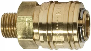 Die Schnellverschlusskupplung mit einem Innendurchmesser von 7,2 ist für die Verbindung von Leitungen aus Messing blank mit einem Hülseninnendurchmesser von 9 ausgelegt. Sie kann bei Drücken von 0 bis 35 bar und Temperaturen von -20 °C bis 100 °C eingesetzt werden. Die geschlossene Hülse schützt die Kupplung vor Verschmutzung. In Kombination mit Stahlstopfen kann diese Kupplung dank ihrer gehärteten Sicherungsstifte auch für Druckluftwerkzeuge verwendet werden.