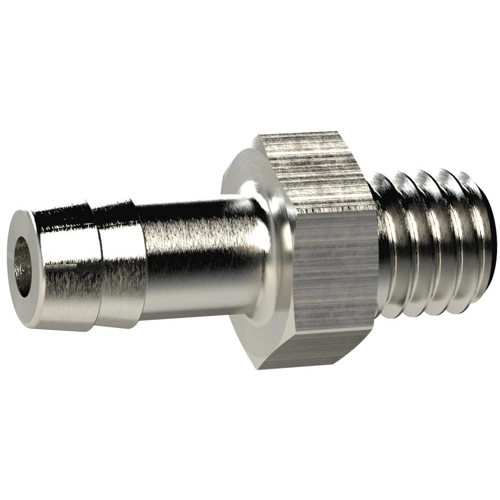 Einschraubschlauchtülle, M3 o., für Schlauch LW 2, Messing vernickelt, Arbeitsdruck max. 25 bar, Max. Betriebstemperatur 150 °C.
