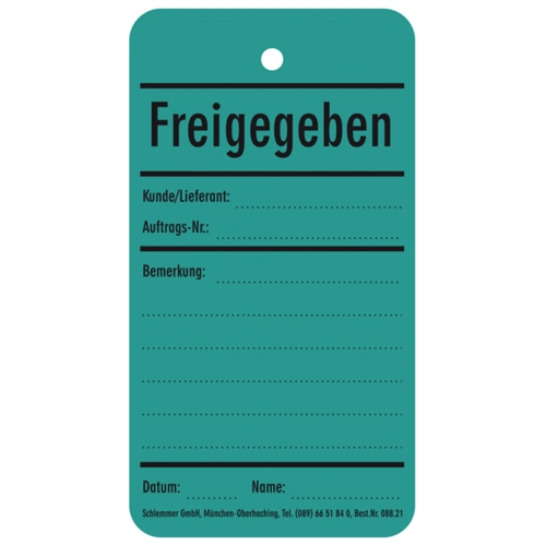 Typ: "088.21, Anhänger "Freigegeben", grün/schwarz, 50 St.-Packg."