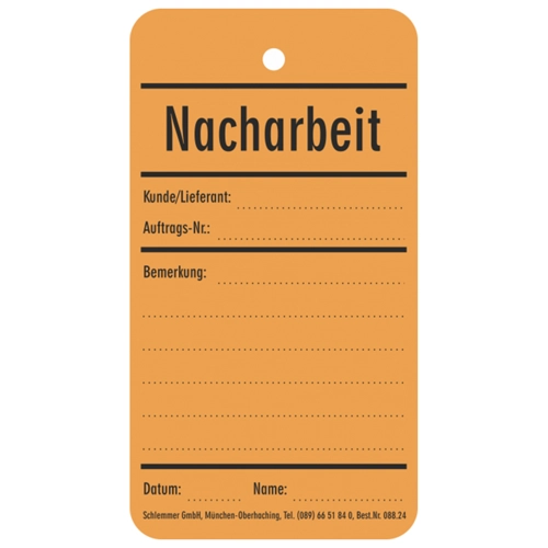 Typ: "088.24, Anhänger "Nacharbeit", orange/schwarz, 50 St.-Packg."