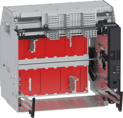 Dies ist ein Chassis für 4-polige Compact NS und Masterpact NT Ausfahrbare Leistungsschalter und Lasttrennschalter. Dieses Chassis ist für ausfahrbare Compact NS 630b bis 1250 N/H Leistungsschalter geeignet. Dieses Chassis ist für ausfahrbare Compact NS 630b bis 1250 NA Lasttrennschalter geeignet. Dieses Chassis ist für den Auszug von Masterpact NT 06 bis 10 H1/H2 Leistungsschaltern geeignet. Dieses Chassis ist für den Auszug von Masterpact 06 bis 12 HA Lasttrennschaltern geeignet. Dieses multifunktionale Chassis ist besonders für eingehende Geräte geeignet. Es ermöglicht das Ein- und Ausschalten der Geräte durch eine Tür mit Hilfe einer Kurbel, die im Fahrgestell aufbewahrt werden kann. Es zeigt drei Stellungen des Geräts an (angeschlossen, geprüft und getrennt), die lokal durch eine Stellungsanzeige oder ferngesteuert durch einen Schlittenschalter angezeigt werden. Er ermöglicht das Ein- und Ausschalten des Leistungsschalters über eine Schalttafel an der Vorderseite. Es gibt mehrere umfangreiche Verriegelungsmöglichkeiten des Chassis. Ein Fehlanpassungsschutz sorgt dafür, dass ein Leistungsschalter nur in ein Chassis mit kompatiblen Eigenschaften eingebaut wird. Dieses Chassis ist für 3-polige Geräte geeignet.