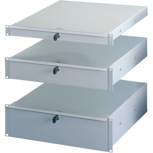 19"-Schubladen zur Montage von Laptops oder als Schreibunterlage für einfache Arbeiten. Die SCHROFF 19"-Schublade hat eine Tragfähigkeit von 15 kg, sodass eine breite Palette von Produkten darauf montiert werden kann.