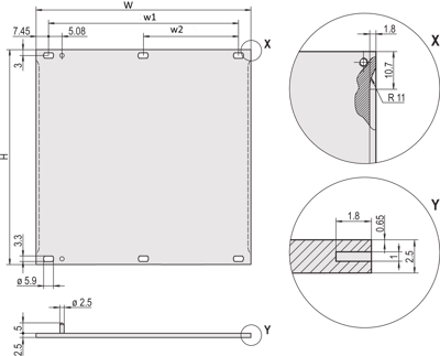 Flache Frontplatte. Abschirmbar mit EMV-Dichtung aus Edelstahl.