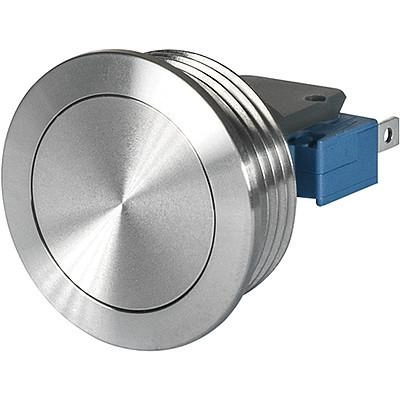 Vandalengeschützter Drucktaster, 1-polig, silber, unbeleuchtet, 5 A/125 VAC, Einbau-Ø 24 mm, 24.1 mm, IP66/IP67, 3-145-569