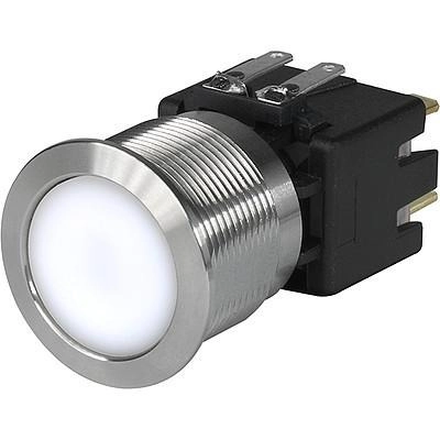Vandalengeschützter Druckschalter, 2-polig, klar, beleuchtet (weiß), 12 A/250 VAC, Einbau-Ø 22 mm, IP65, 1241.8566