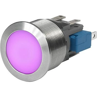 Vandalengeschützter Drucktaster, 1-polig, silber, beleuchtet (RGB), 100 mA/30 V, Einbau-Ø 22 mm, IP67, 3-102-774