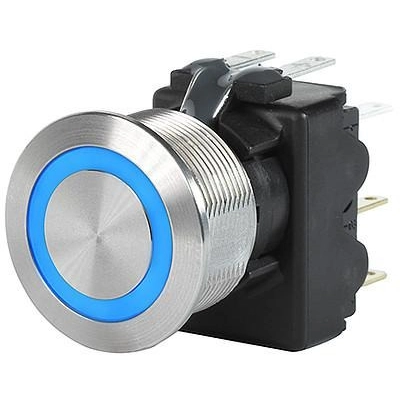 Vandalengeschützter Drucktaster, 2-polig, silber, beleuchtet (blau), 3 A/250 VAC, Einbau-Ø 19 mm, 19,1 mm, IP66/IP67, 3-145-870