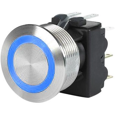 Vandalengeschützter Drucktaster, 2-polig, silber, beleuchtet (blau), 3 A/250 V, Einbau-Ø 22 mm, 19,1 mm, IP67, 3-108-976