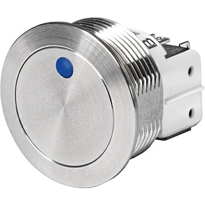 Vandalengeschützter Drucktaster, 1-polig, silber, beleuchtet (weiß), 100 mA/30 VDC, Einbau-Ø 16 mm, 16,1 mm, IP66/IP67, 3-147-384