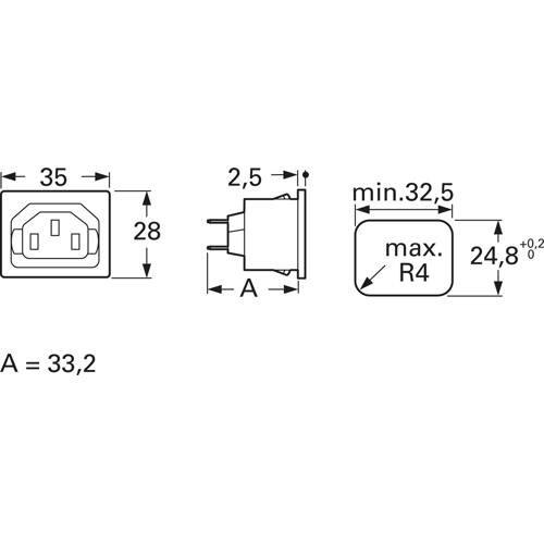 Einbaubuchse F, 3-polig, Snap-in, Steckanschluss, schwarz, 4724.0000